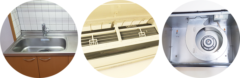 エアコン、キッチン、浴室、トイレ、床をはじめ、家中の清掃を明朗会計にて承ります。
